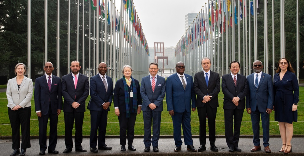 Joint Inspection Unit Inspectors (L to R): Ms. Eileen Cronin (United States of America), Mr. Tesfa Alem Seyoum (Eritrea), Mr. Mohanad Ali Omran Al-Musawi (Iraq), Mr. Uren Pillay (Executive Secretary), Ms. Gönke Roscher (Germany), Mr. Victor Moraru (Republic of Moldova), Mr. Gaeimelwe Goitsemang (Botswana), Mr. Jesús Miranda Hita (Vice-Chair, Spain), Mr. Toshiya Hoshino (Japan), Mr. Conrod Cecil Hunte (Antigua and Barbuda) and Ms. Carolina Fernández Opazo (Chair, Mexico).